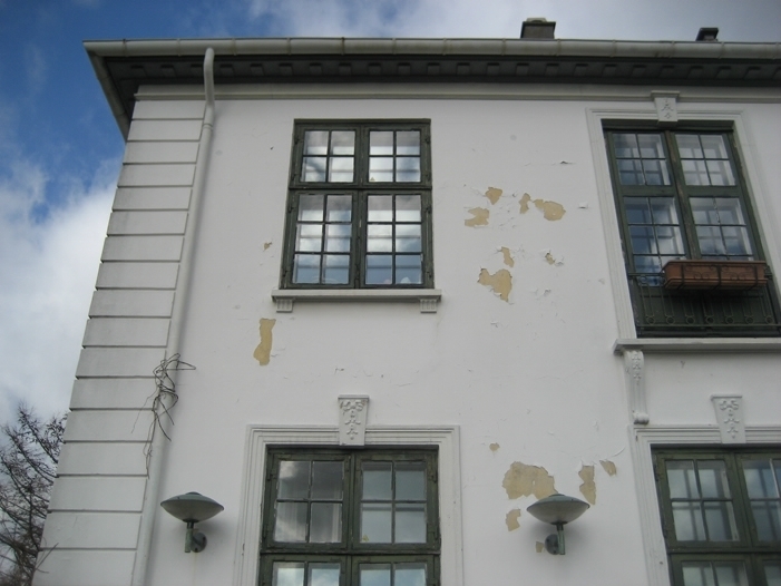 Al facadepuds er påny slutbehandlet med kalkvand i flere lag. Balkon-balustre er udskiftet og balkondæk, gesimser, facadeindfatninger, kvadder, refendfuger, sokkel, støbte sålbænke m.m. er repareret.